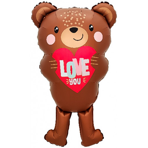 Шар (30''/76 см) Фигура, Мишка с сердцем, 1 шт. в уп.