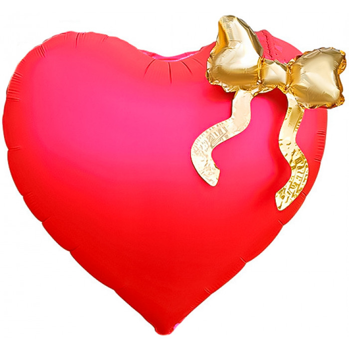 Стильно и недорого. Уникальный дизайн. Шар (22''/56 см) Сердце, Золотой бант, Красный, 1 шт. в уп. Тематика: Общепоздравительные
