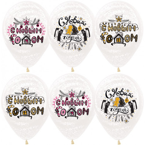 Стильно и недорого. Уникальный дизайн. Шар (12''/30 см) С Новым Годом! Снежное Граффити, Прозрачный, кристалл, 2 ст, 25 шт. Тематика: Новый Год
