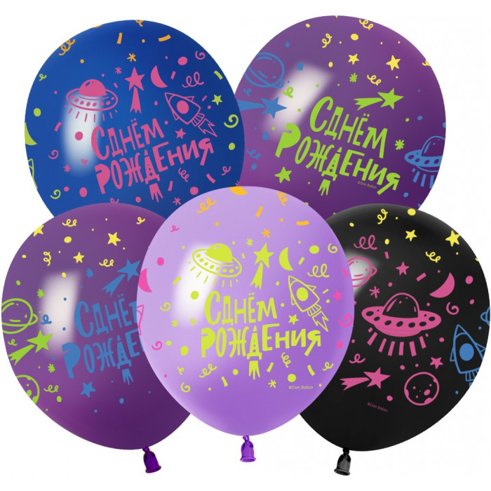Стильно и недорого. Уникальный дизайн. Шар (12''/30 см) Яркий космос, С Днем Рождения!, Ассорти, флуор, 5 ст, 25 шт. Тематика: День Рождения
