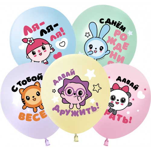 Стильно и недорого. Уникальный дизайн. Шар (12''/30 см) Малышарики, С Днем Рождения!, Ассорти, макарунс, 2 ст, 25 шт. Тематика: Общепоздравительные