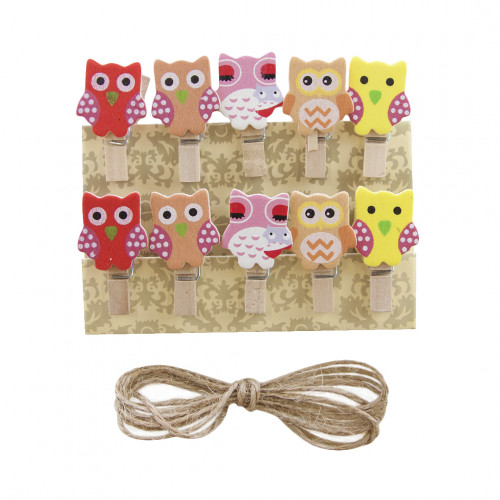 Декоративные прищепки, Совушки, 3,5 см, Разноцветный, 10 шт.