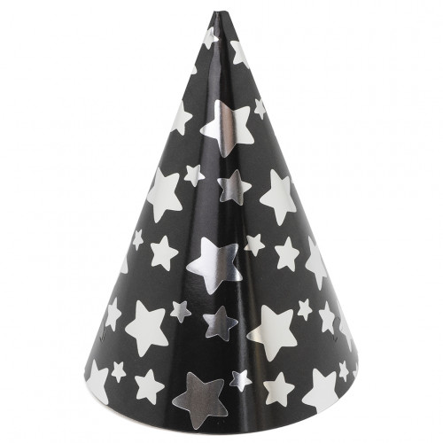 Колпаки, Звезды Микс, Черный/Серебро, Металлик, 16 см, 6 шт. в упак.