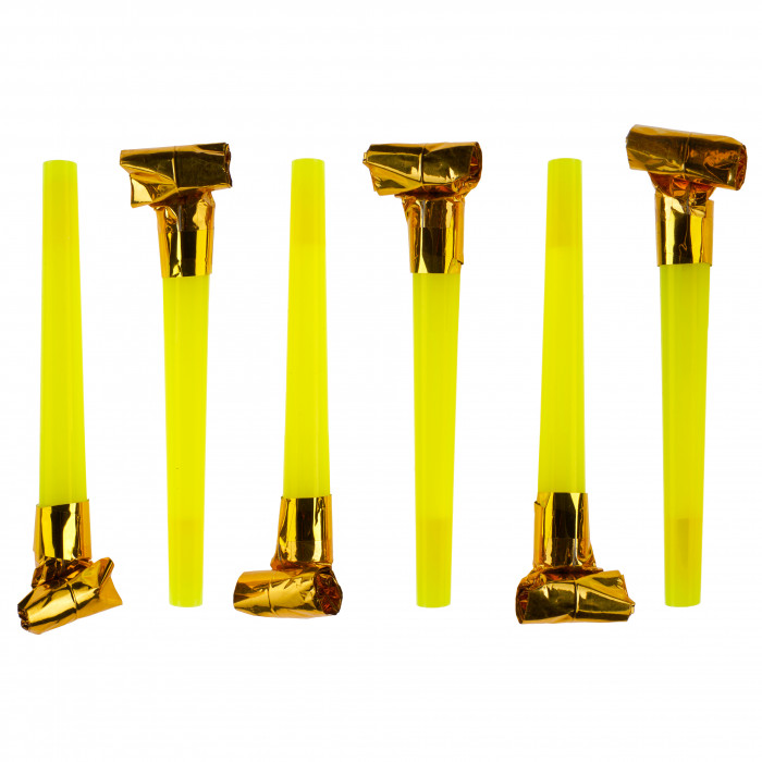 Карнавальные язычки гудки, Шумчики, Желтый/Золото, 11 см, 6 шт. в упак.