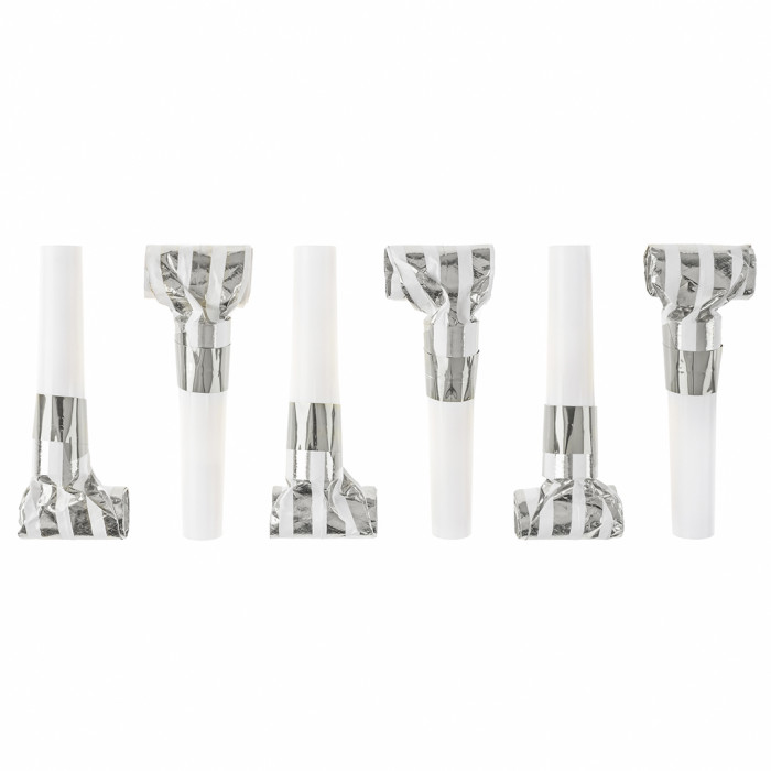 Карнавальные язычки гудки, Полосы, Белый/Серебро, Металлик, 6 см, 6 шт. в упак.