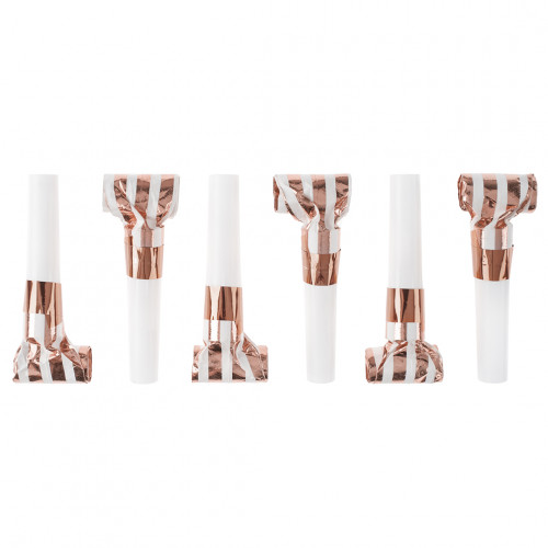 Карнавальные язычки гудки, Полосы, Белый/Розовое золото, Металлик, 6 см, 6 шт. в упак.