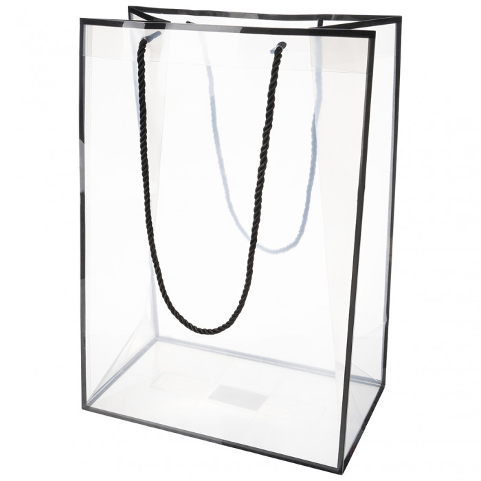 Пакет для цветов, Элегант с каймой, Прозрачный/Черный, 35*24,5*15 см, 1 шт.