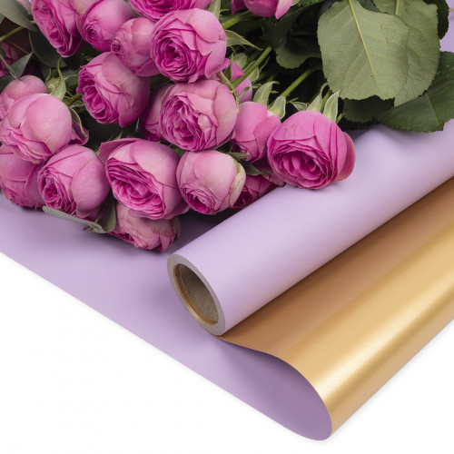 Стильно и недорого. Уникальный дизайн. Упаковочная пленка 65мкр (0,57*10 м) Двухцветная, Лаванда/Золото, Матовый, 1 шт. Тематика: Общепоздравительные