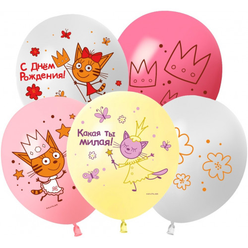 Стильно и недорого. Уникальный дизайн. Шар (12''/30 см) Три Кота, Принцессы, Ассорти, пастель, 1 ст, 25 шт. Тематика: Общепоздравительные