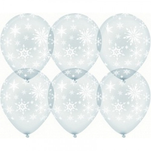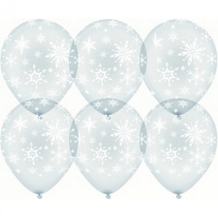 Шар (12''/30 см) Искры снежинок, Прозрачный, кристалл, 5 ст, 25 шт.