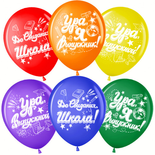 Шар (12''/30 см) До Свидания, Школа, Ура, Выпускной!, Ассорти, пастель, 2 ст, 25 шт.