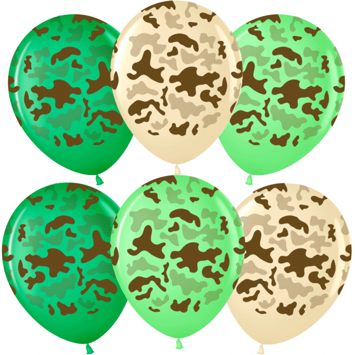 Стильно и недорого. Уникальный дизайн. Шар (12''/30 см) Камуфляж, Ассорти, пастель, 5 ст, 25 шт. Тематика: Общепоздравительные, 23 февраля