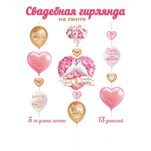 Свадебная гирлянда на ленте (длина ленты 5 м)