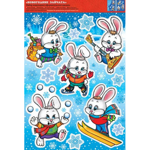 Набор наклеек "НОВОГОДНИЕ ЗАЙЧАТА" (год Кролика)