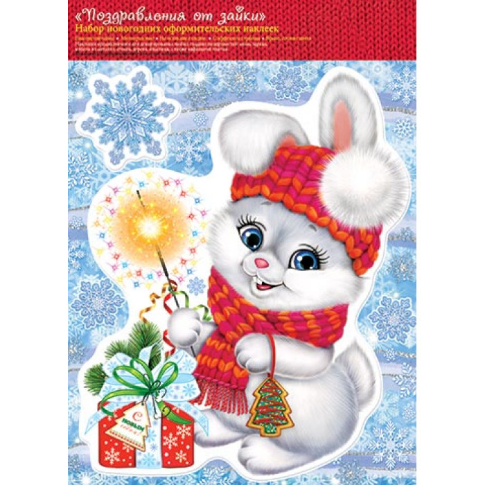 Стильно и недорого. Уникальный дизайн. Набор наклеек "Поздравления от зайки" (год Кролика) Тематика: Новый Год