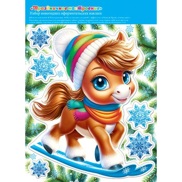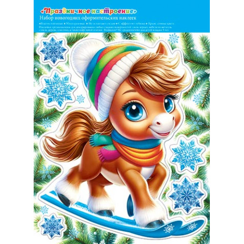 Двухсторонняя наклейка оформителькая "Праздничное настроение" (год Лошади)