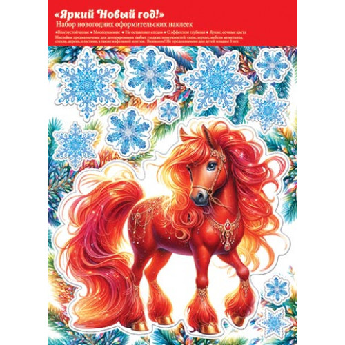 Двухсторонняя наклейка оформителькаяк "Яркий Новый год!" (год Лошади)