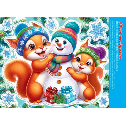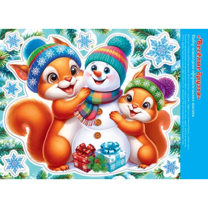 Стильно и недорого. Уникальный дизайн. Двухсторонняя наклейка оформителькая "Весёлые друзья" Тематика: Новый Год