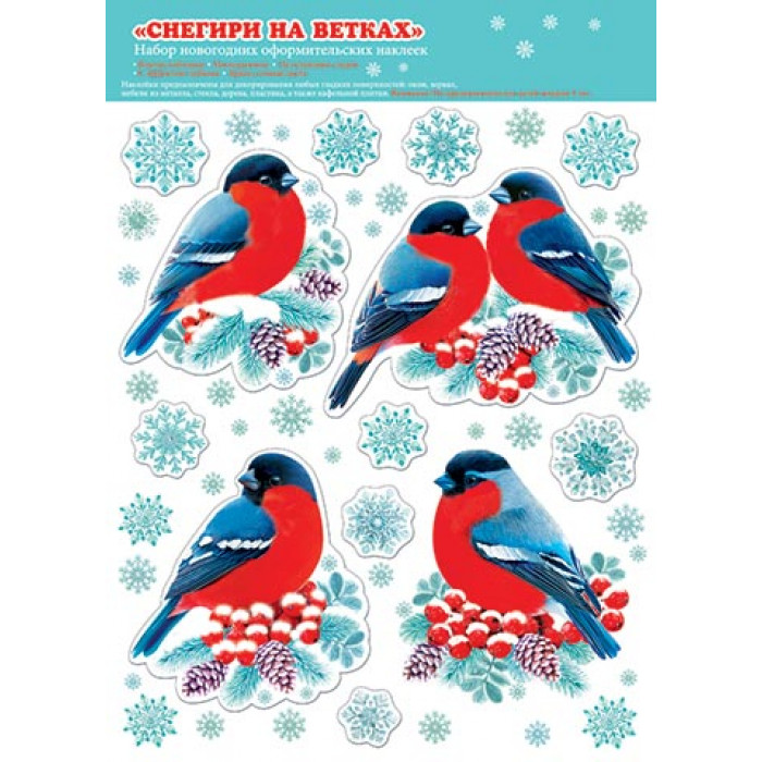 Двухсторонняя наклейка оформителькая "Снегири на ветках"