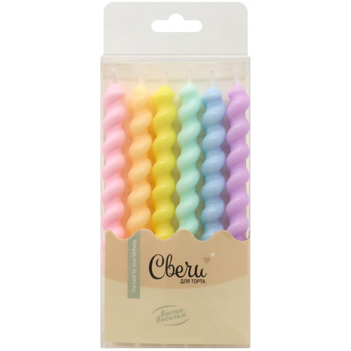 Свечи Зефирная серия, Нежные цвета, Макарунс, 0,7*7 + 3 см, 6 шт. с держат.