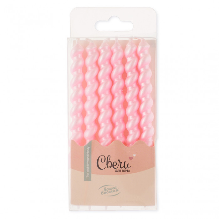 Свечи Спирали, Розовый, Перламутр, 0,7*7 + 3,5 см, 6 шт. с держат.