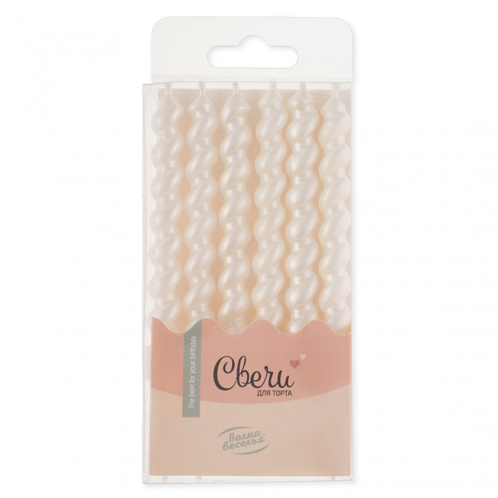 Свечи Спирали, Белый, Перламутр, 0,7*7 + 3,5 см, 6 шт. с держат.