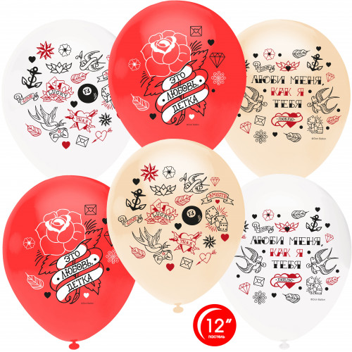 Стильно и недорого. Уникальный дизайн. Шар (12''/30 см) Это Любовь, Детка! (тату), Ассорти, кристалл, 1 ст, 10 шт. Тематика: Любовь
