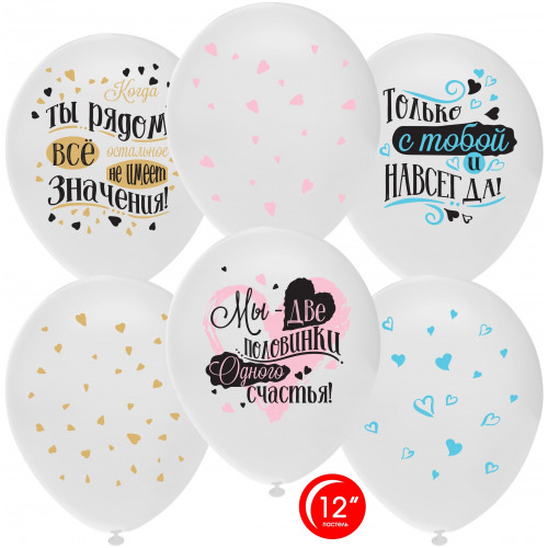 Шар (12''/30 см) С Тобой Навсегда, Две Половинки Счастья, Белый (801), пастель, 2 ст, 50 шт.