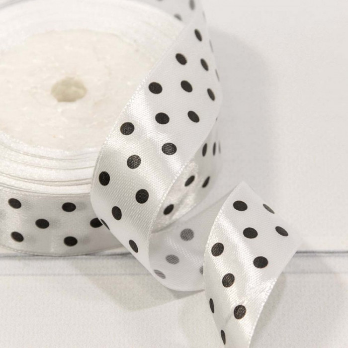 Лента Атласная Горох 2,5см*25ярд Белый 1/5 1/300