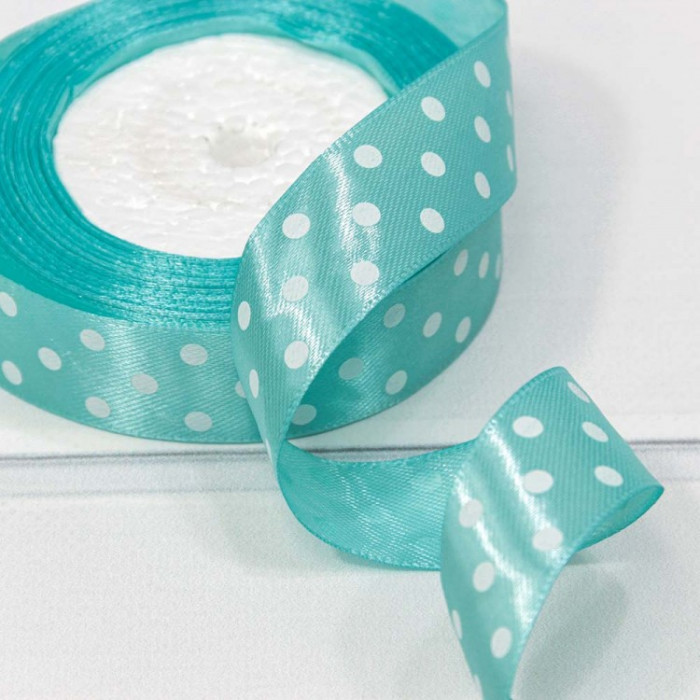 Лента Атласная Горох 2,5см*25ярд Бирюзовый 1/5 1/300