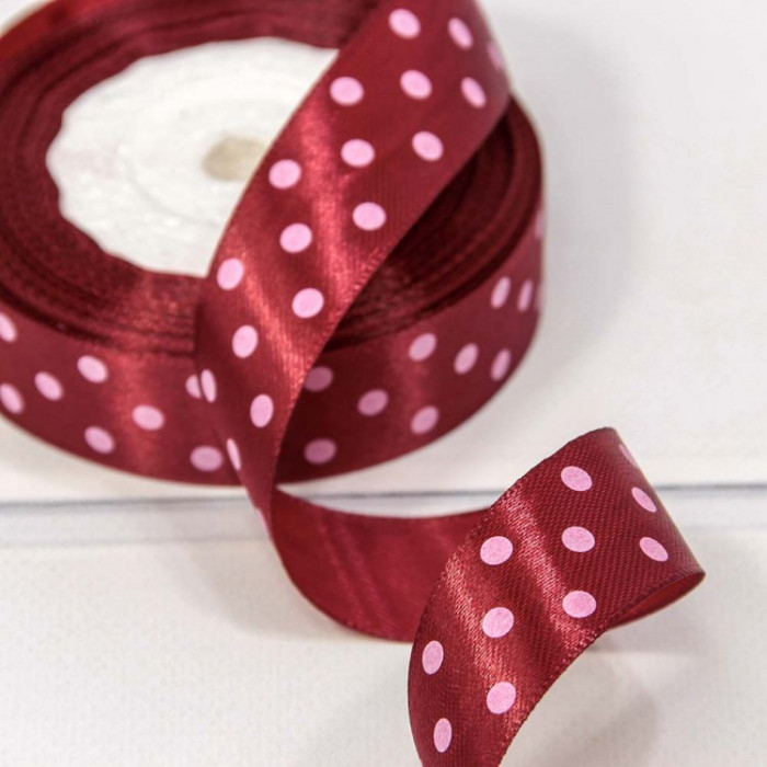 Стильно и недорого. Уникальный дизайн. Лента Атласная Горох 2,5см*25ярд Бордовый 1/5 1/300 Тематика: Общепоздравительные