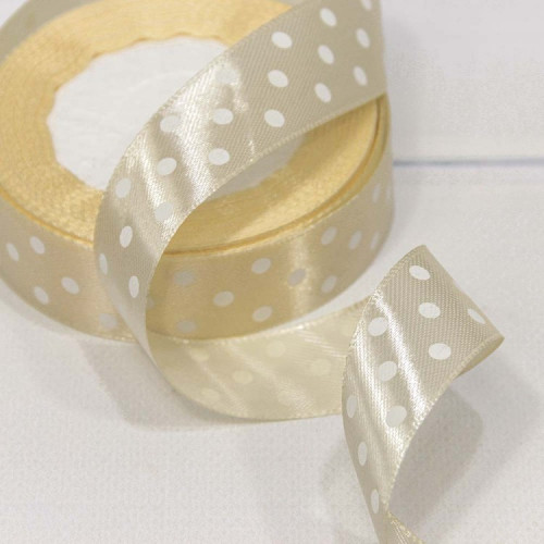 Лента Атласная Горох 2,5см*25ярд Кремовый 1/5 1/300