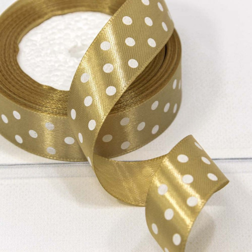 Лента Атласная Горох 2,5см*25ярд Тёмный жёлто-коричневый 1/5 1/300