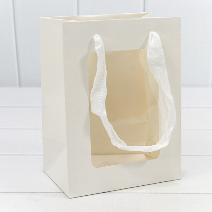 Пакет подарочный с окошком Белый 15*20*10 210г 1/10 1/480