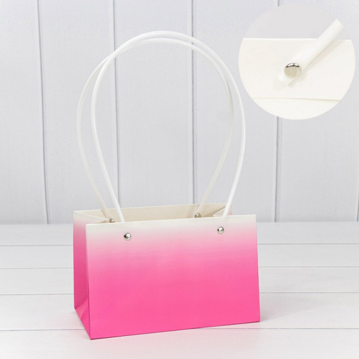 Стильно и недорого. Уникальный дизайн. Пакет подарочный "Ваза для цветов" 19*12*10,5 "Градиент" Розовый 1/10 1/150 Тематика: Общепоздравительные