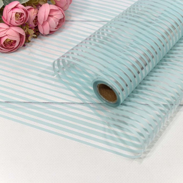 Стильно и недорого. Уникальный дизайн. Плёнка 0,58*10м 275г глянцевая в полоску 50мкм Голубой 1/30 Тематика: Общепоздравительные