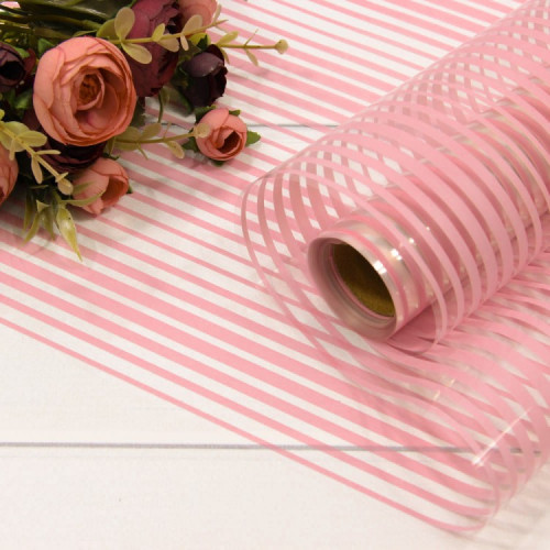 Плёнка 0,58*10м 275г глянцевая в полоску 50мкм Розовый 1/30