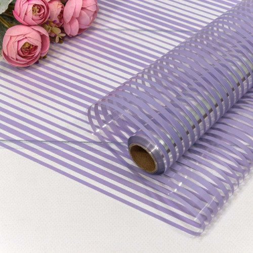 Стильно и недорого. Уникальный дизайн. Плёнка 0,58*10м 275г глянцевая в полоску 50мкм Светло-фиолетовый 1/30 Тематика: Общепоздравительные
