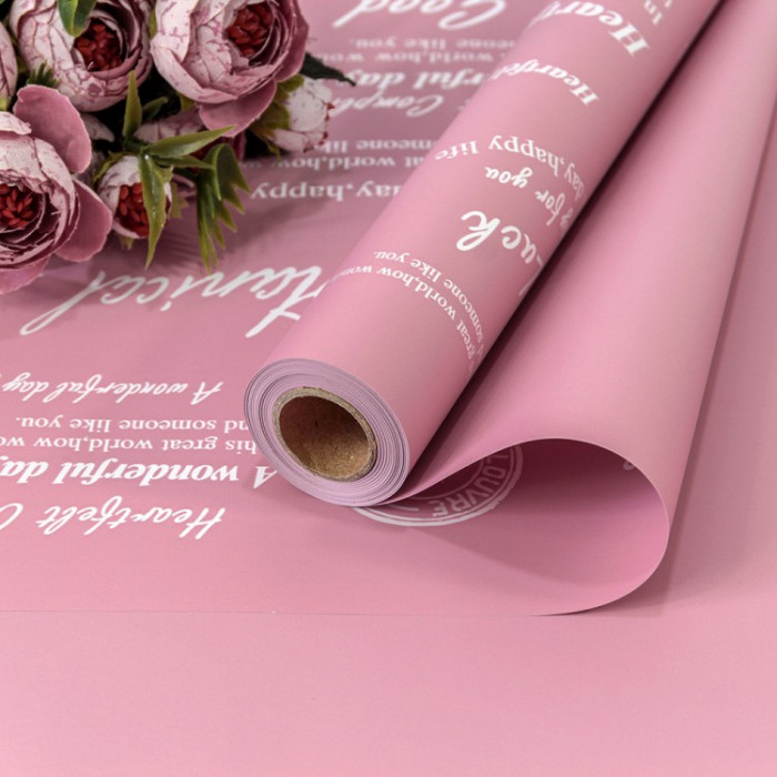 Стильно и недорого. Уникальный дизайн. Плёнка 0,58*10м 290г матовая двухсторонняя 65мкм с глянцевой печатью Сиреневый/Жёлто-персиковый 1/30 Тематика: Общепоздравительные