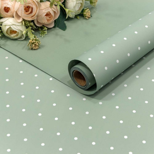 Стильно и недорого. Уникальный дизайн. Плёнка 0,58*10м матовая "Мелкий горошек" 60мкм Бледно-зелёный 1/30Тематика: Общепоздравительные