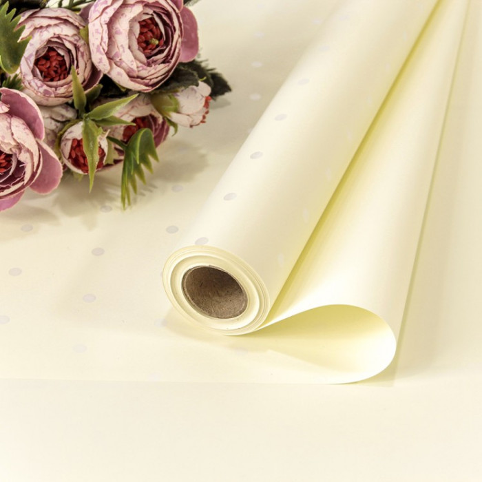 Стильно и недорого. Уникальный дизайн. Плёнка 0,58*10м матовая "Мелкий горошек" 65мкм Жемчужно-белый 1/30 Тематика: Общепоздравительные