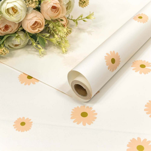 Стильно и недорого. Уникальный дизайн. Плёнка 0,58*10м матовая "Ромашки" 60мкм Белый 1/30 Тематика: Общепоздравительные