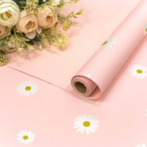Стильно и недорого. Уникальный дизайн. Плёнка 0,58*10м матовая "Ромашки" 60мкм Розовый 1/30 Тематика: Общепоздравительные