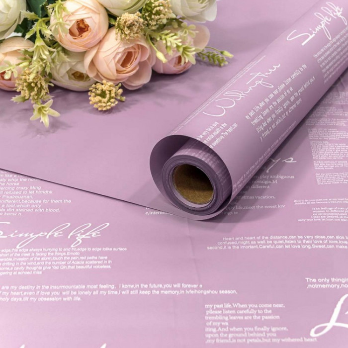 Стильно и недорого. Уникальный дизайн. Плёнка 0,58*10м матовая с надписями 65мкм Бледно-фиолетовый 1/30 Тематика: Общепоздравительные
