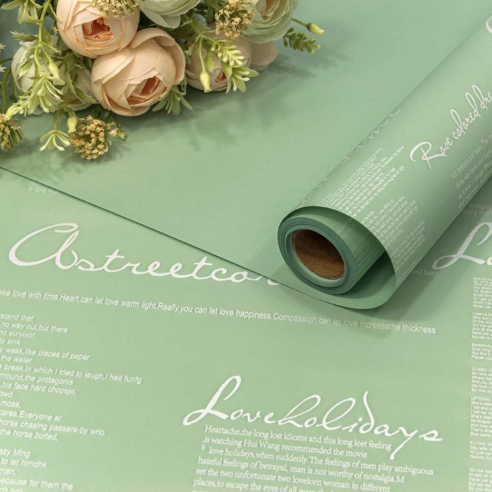 Стильно и недорого. Уникальный дизайн. Плёнка 0,58*10м матовая с надписями 65мкм Бледно-зелёный 1/30 Тематика: Общепоздравительные