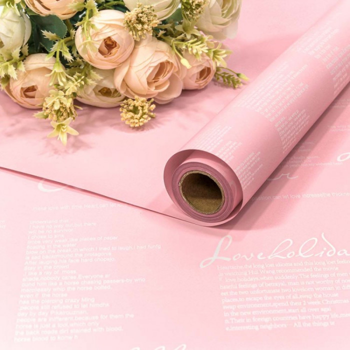 Стильно и недорого. Уникальный дизайн. Плёнка 0,58*10м матовая с надписями 65мкм Розовый 1/30 Тематика: Общепоздравительные