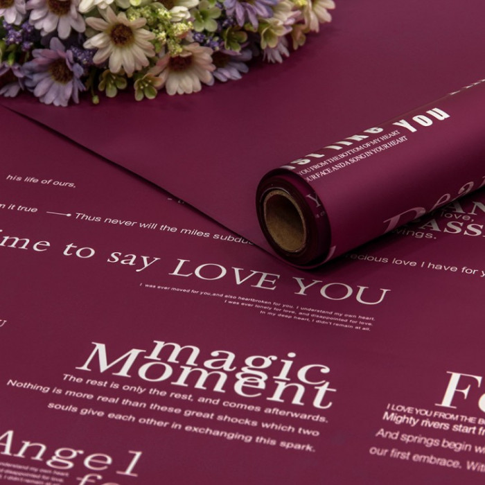 Плёнка 0,58*10м матовая с печатью 60мкм Винный 1/30