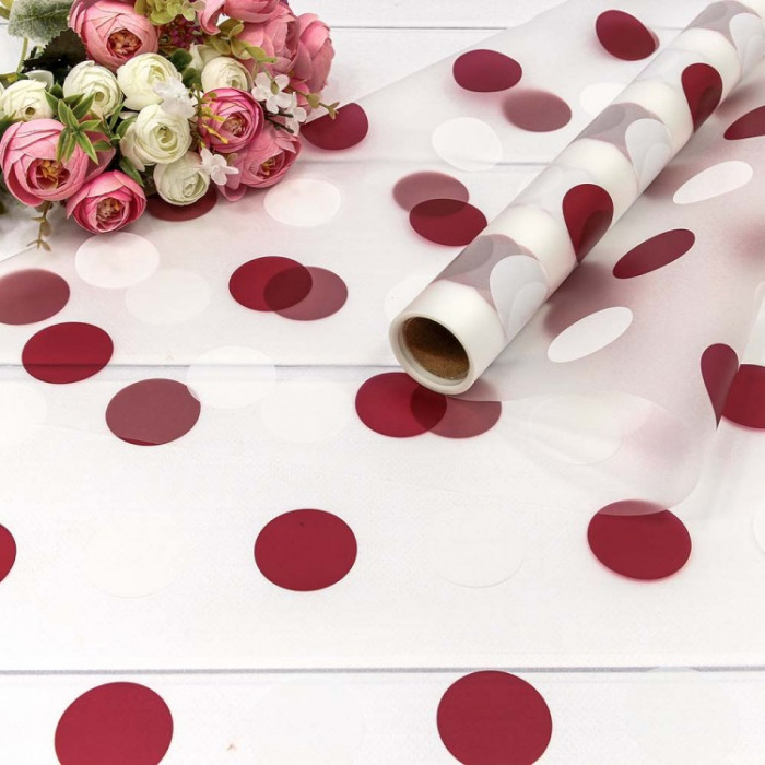 Стильно и недорого. Уникальный дизайн. Плёнка 0,58*10м прозрачная "Горох" 50мкм Бордовый 1/30 Тематика: Общепоздравительные