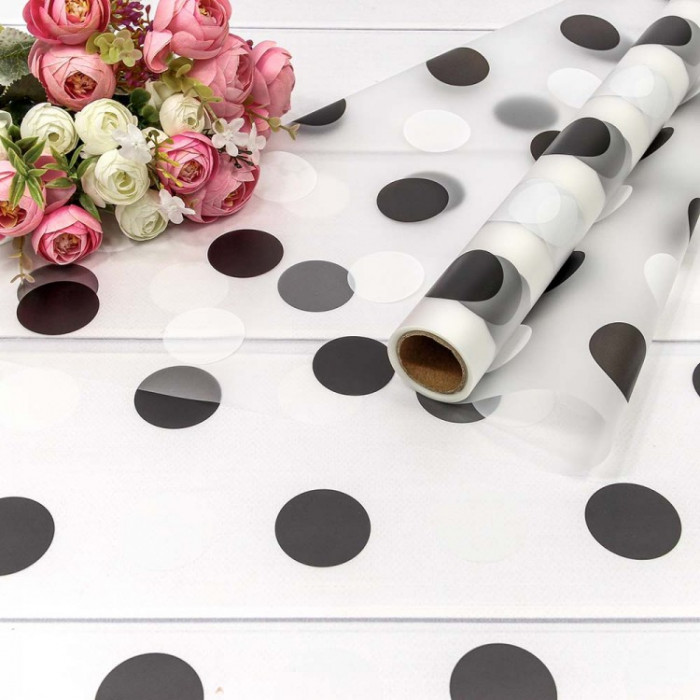 Стильно и недорого. Уникальный дизайн. Плёнка 0,58*10м прозрачная "Горох" 50мкм Чёрный 1/30 Тематика: Общепоздравительные