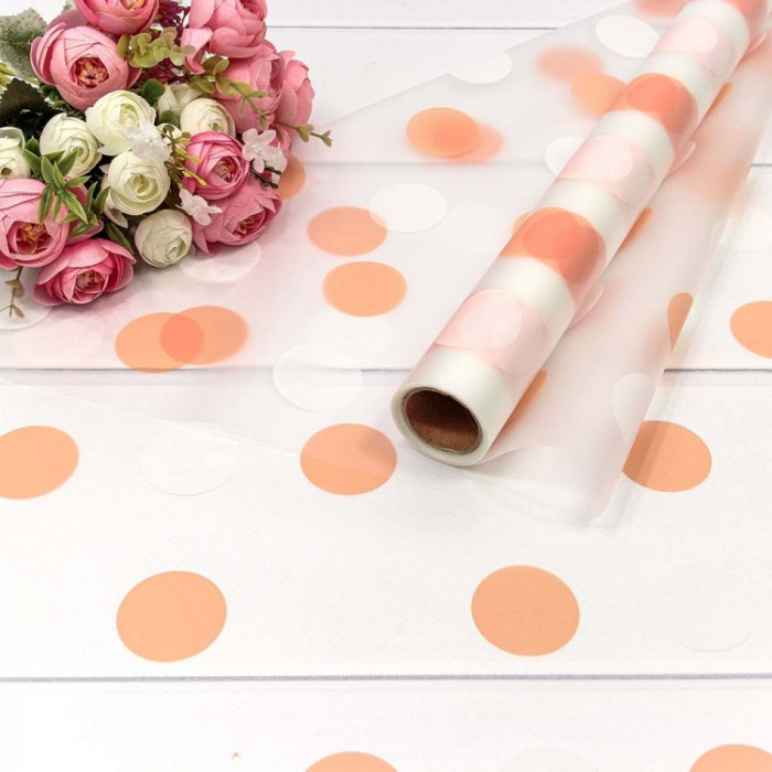 Стильно и недорого. Уникальный дизайн. Плёнка 0,58*10м прозрачная "Горох" 50мкм Оранжевый 1/30 Тематика: Общепоздравительные